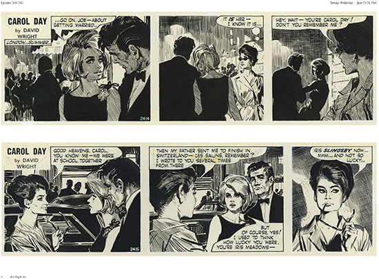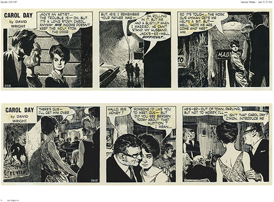In Jack Slingsby we reprint the complete story from the original art, in the full size of the originals, a large 17 x 5.25 inches. Our goal is to give readers an experience as close as possible to viewing the original art, and to provide a definitive presentation, as Wright and his art deserve, of one of David Wright's very best stories.