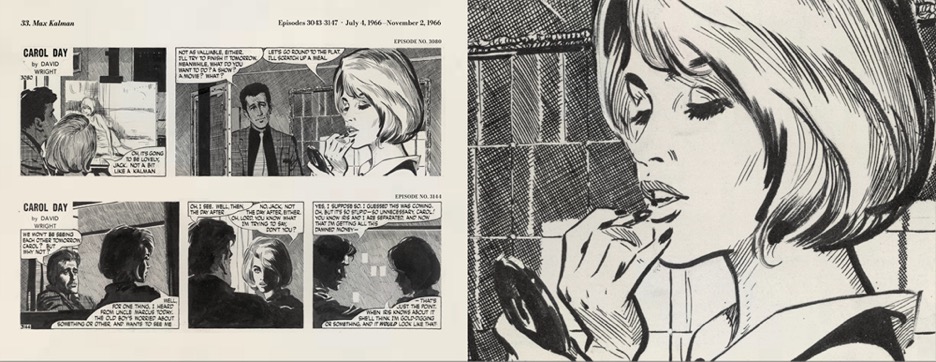 If you missed it the first time around, this book presents, for the first time, the full range of Carol Day art, from Wright's first story to his last, with examples from every story. We've gathered 136 outstanding Carol Day examples from across Wright's run to display. All are reproduced from the original art to present the flavor of the strip and the magnitude of Wright's achievement. Here are three sample 2- page spreads.